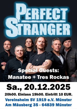 Den Abschluss gestalten PERFECT STRANGER. Die Classic Rock Band feiert 2026 ihr 40-jähriges Jubiläum. Wer Perfect Stranger schon jetzt in Hochform erleben will, sollte sich diesen Abend dick im Kalender markieren.